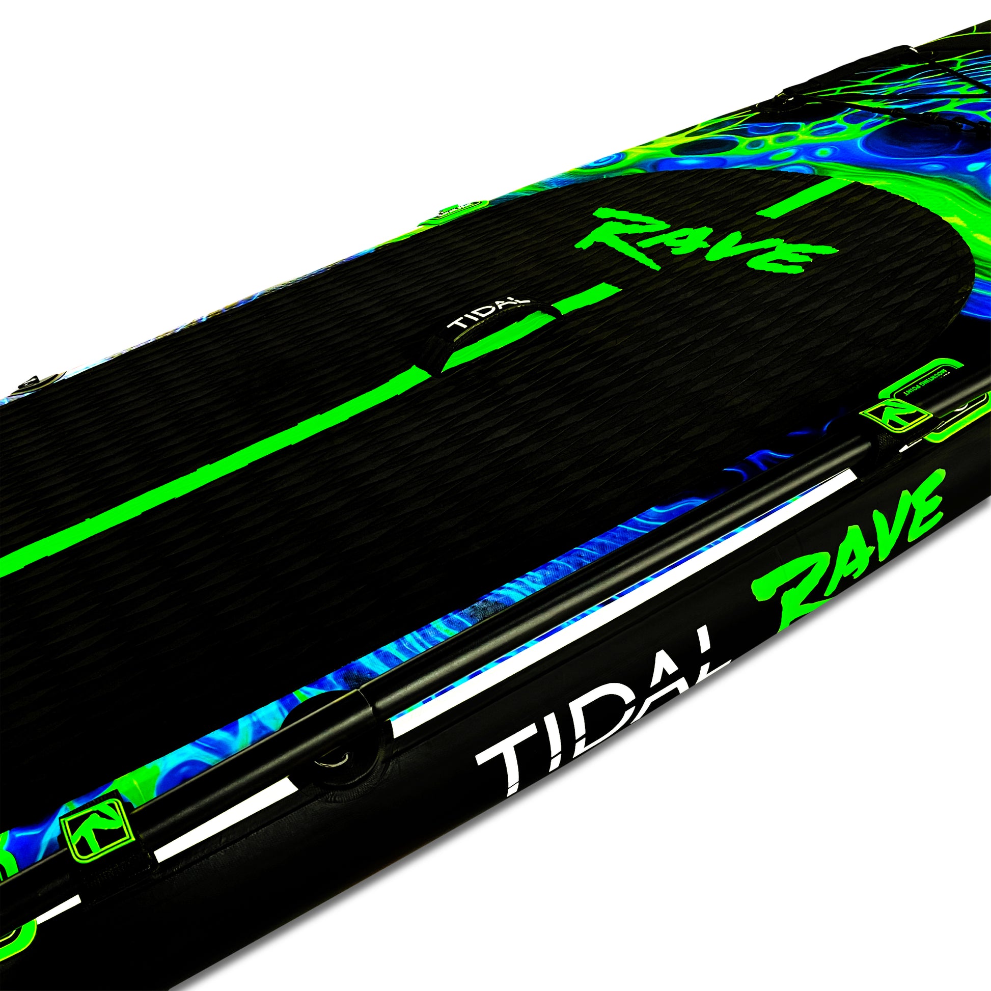 Tidal Rave's triple-layer composite drop-stitch technology makes for a more rigid core, firm density yet lighter board. This allows for a super swift glide on the water surface.