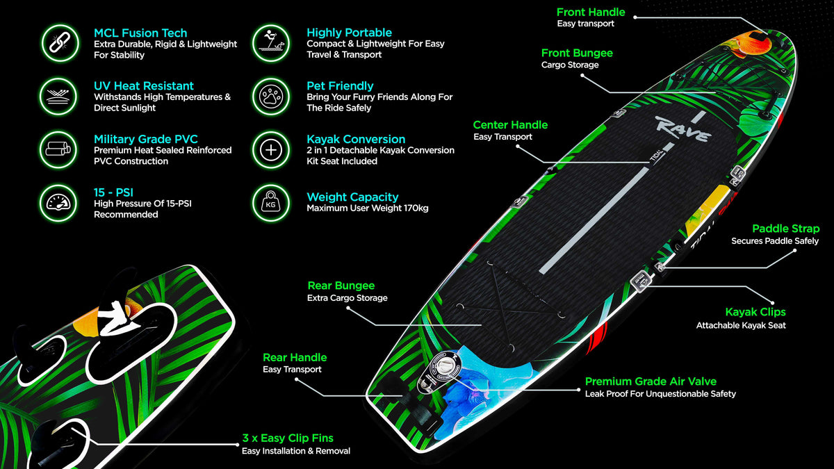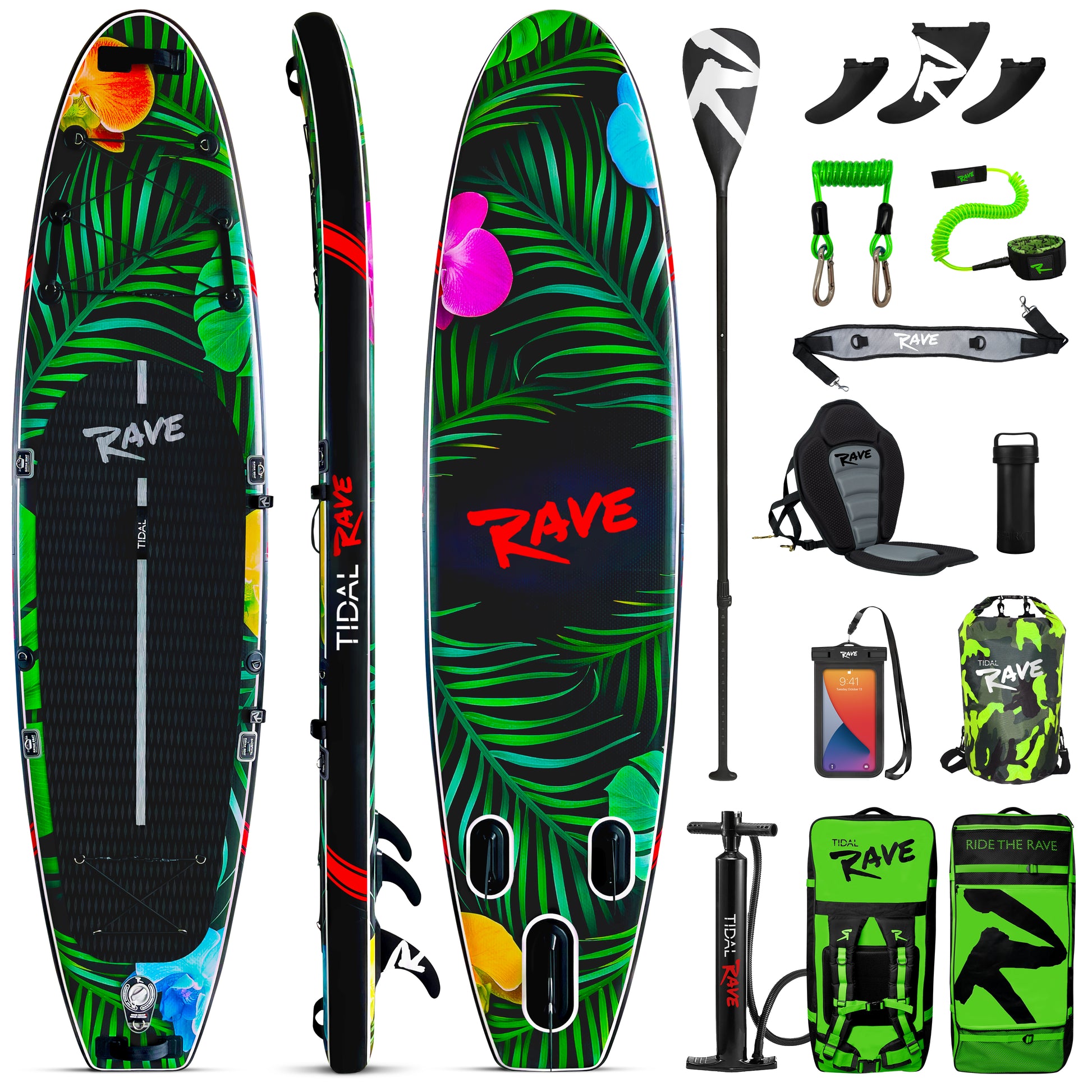 Tidal Rave Paddleboard 10'6" - Inflatable SUP Neon - Jungle Design